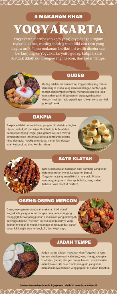 Berlibur ke Yogyakarta tak lengkap tanpa mencicipi kuliner khasnya yang kaya cita rasa. Lima makanan legendaris berikut ini bukan hanya memanjakan lidah, tetapi juga membawa Anda lebih mengenal Yogyakarta. Mari rasakan keistimewaan kuliner khas Yogyakarta yang wajib Anda coba.